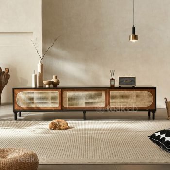 Elegant Teak & Rattan TV Unit: A Stylish Blend of Classic and Contemporary