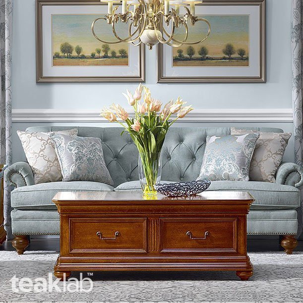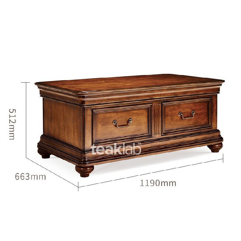 Perfect for resting a tray of drinks, a favorite magazine, or an eye-catching floral display, coffee tables are a must-have in our home decor. Take this one for example: Made in India, this piece is crafted from Solid Teak Wood and features two drawers with vintage handle. A neutral hue allows it to blend easily with your color scheme.