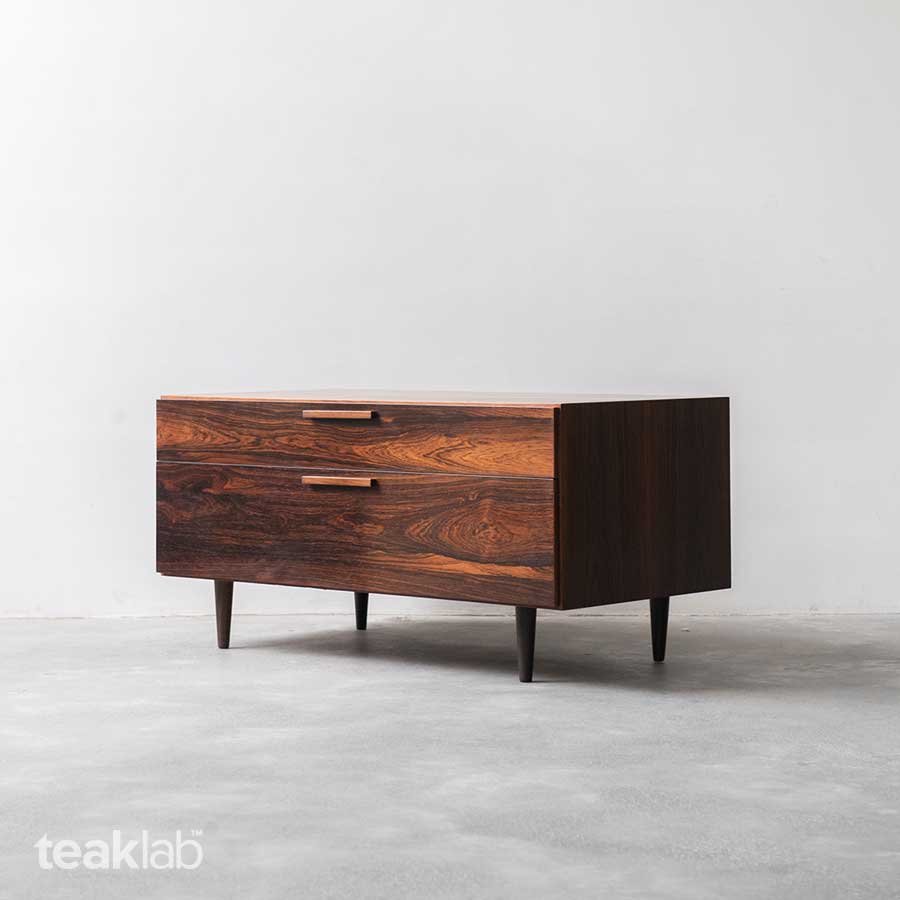 Bottom drawer with interior finished in rosewood offers plenty of storage.