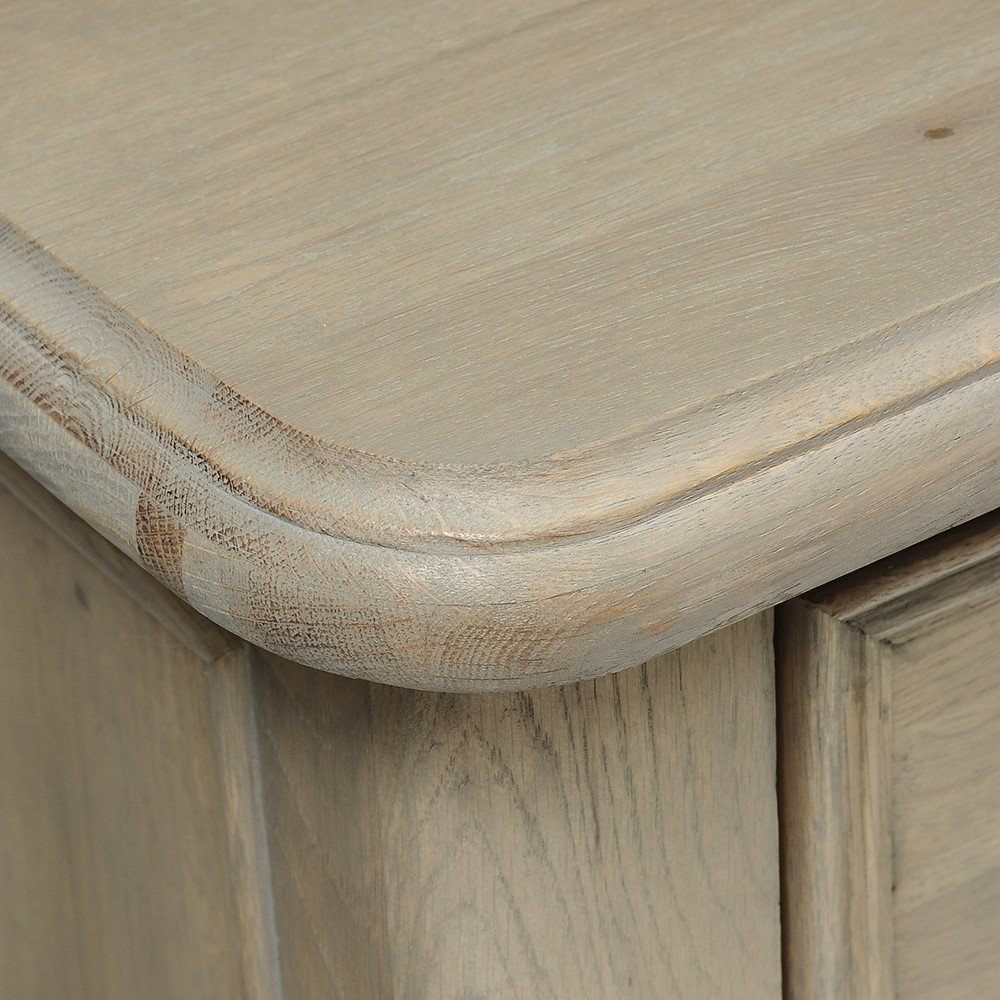 Make a statement with our smoked teak large sideboard will revamp any room in your home. This three door sideboard can sit comfortably everywhere from your hallway to the living room. With a generous cupboard space offering ideal to keep all of your best dinnerware safe. The three smaller drawers which are ideal for holding items such as napkins or cutlery; the possibilities with this sideboard really are endless. Traditional styling is at the heart of our range, with curved edges, bun feet and detailed moulding on all visible sides.