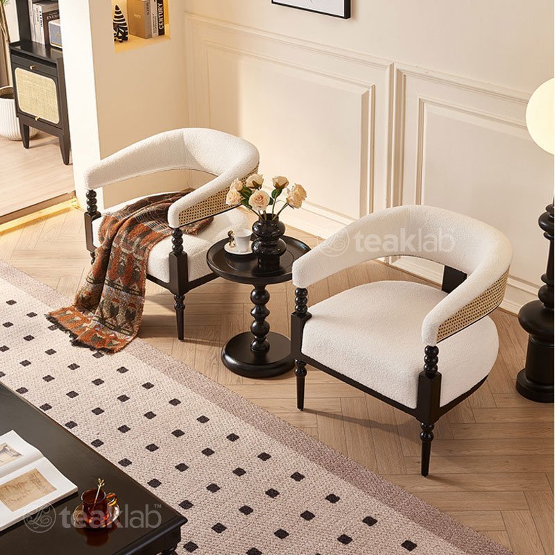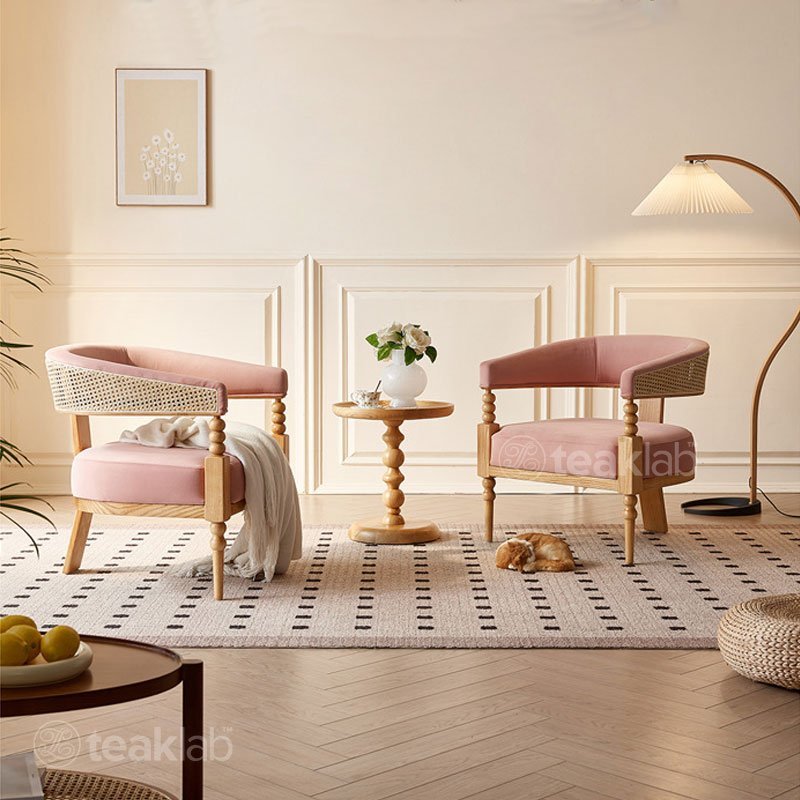 **Modern Rattan Cane Chair with Luxurious Upholstery – A Blend of Tradition and Trend by Teak Lab**