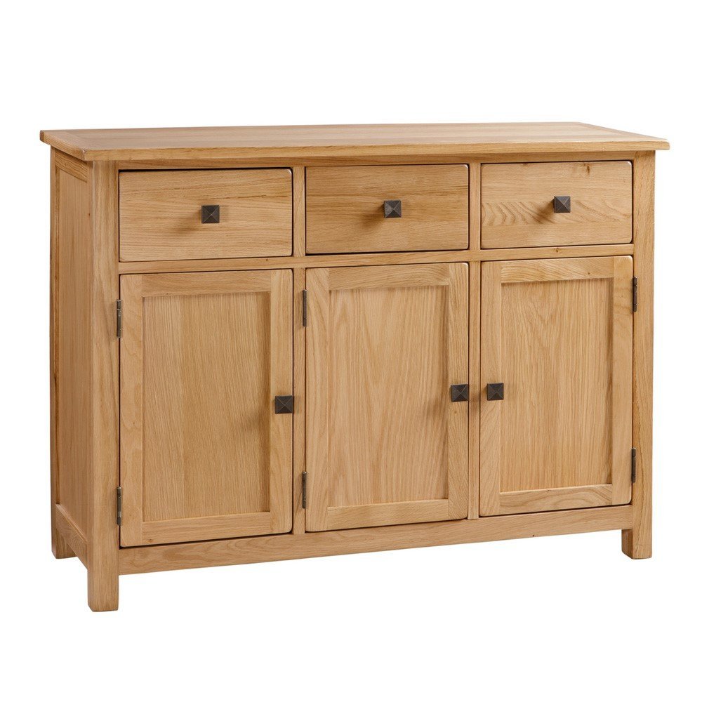 Boasting plenty of storage potential, our beautiful Teak Sideboard will make the perfect addition to your dining room or lounge. With three roomy cupboards – perfect for keeping any room clutter-free – the three top drawers will safely store spare cutlery, napkins and placemats all in one easy-to-reach space too. A light teak design that oozes plenty of rustic farmhouse charm, the matte black handles add a welcoming contemporary touch – perfect for complementing all interior styles.