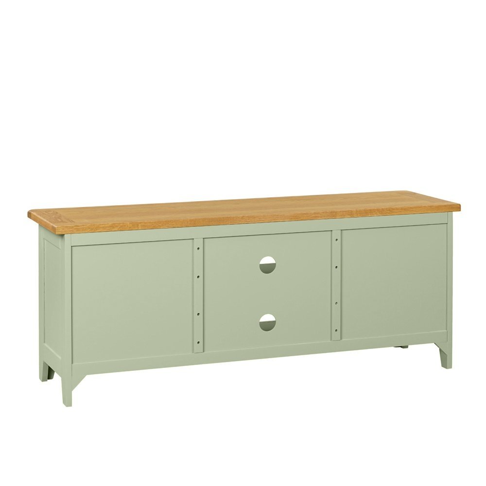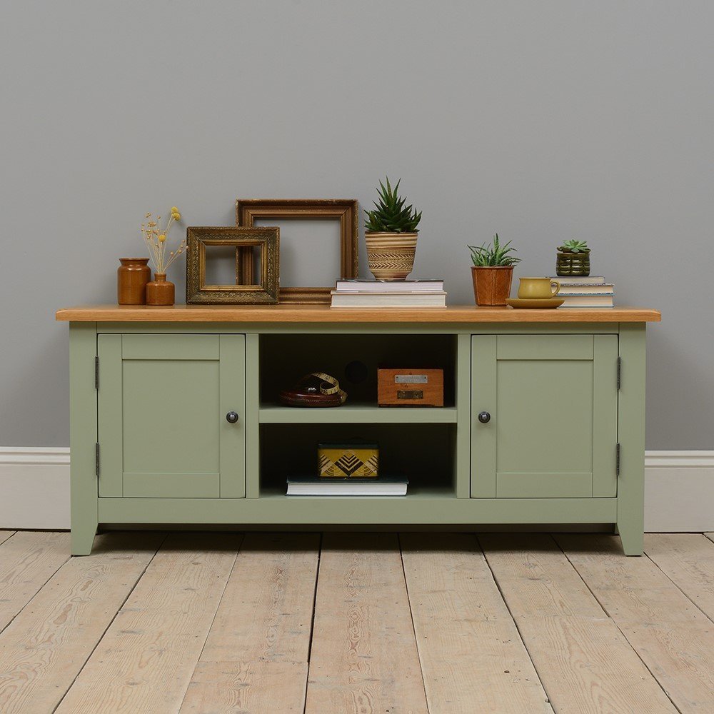 Our Painted Widescreen TV Stand can accommodate TV’s up to 65” in width with ease.