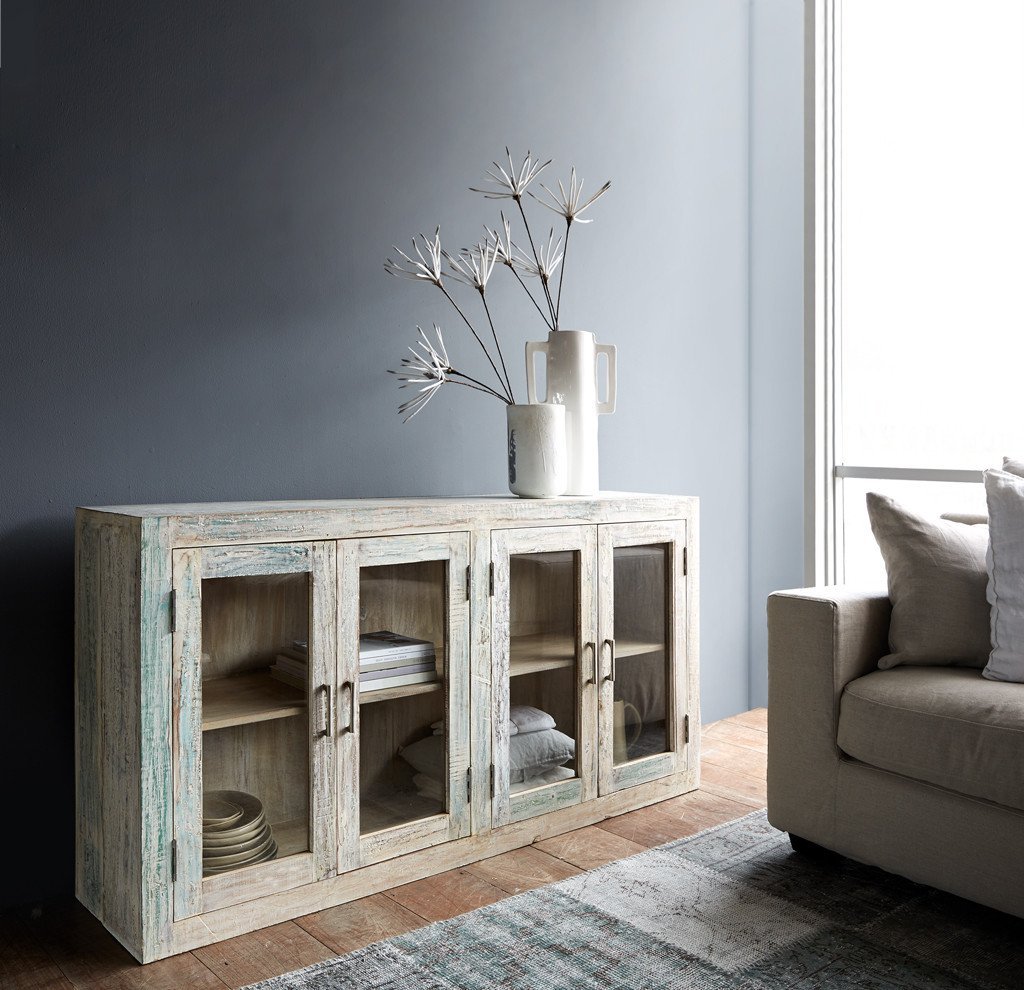 Each sideboard is unique- carefully constructed using teak sourced from India. Inject a little colour with this unique sideboard. Besides being a good looking piece, it is also a practical storage solution. Our Sideboard is uniquely original. Available with either glass doors or wooden doors.