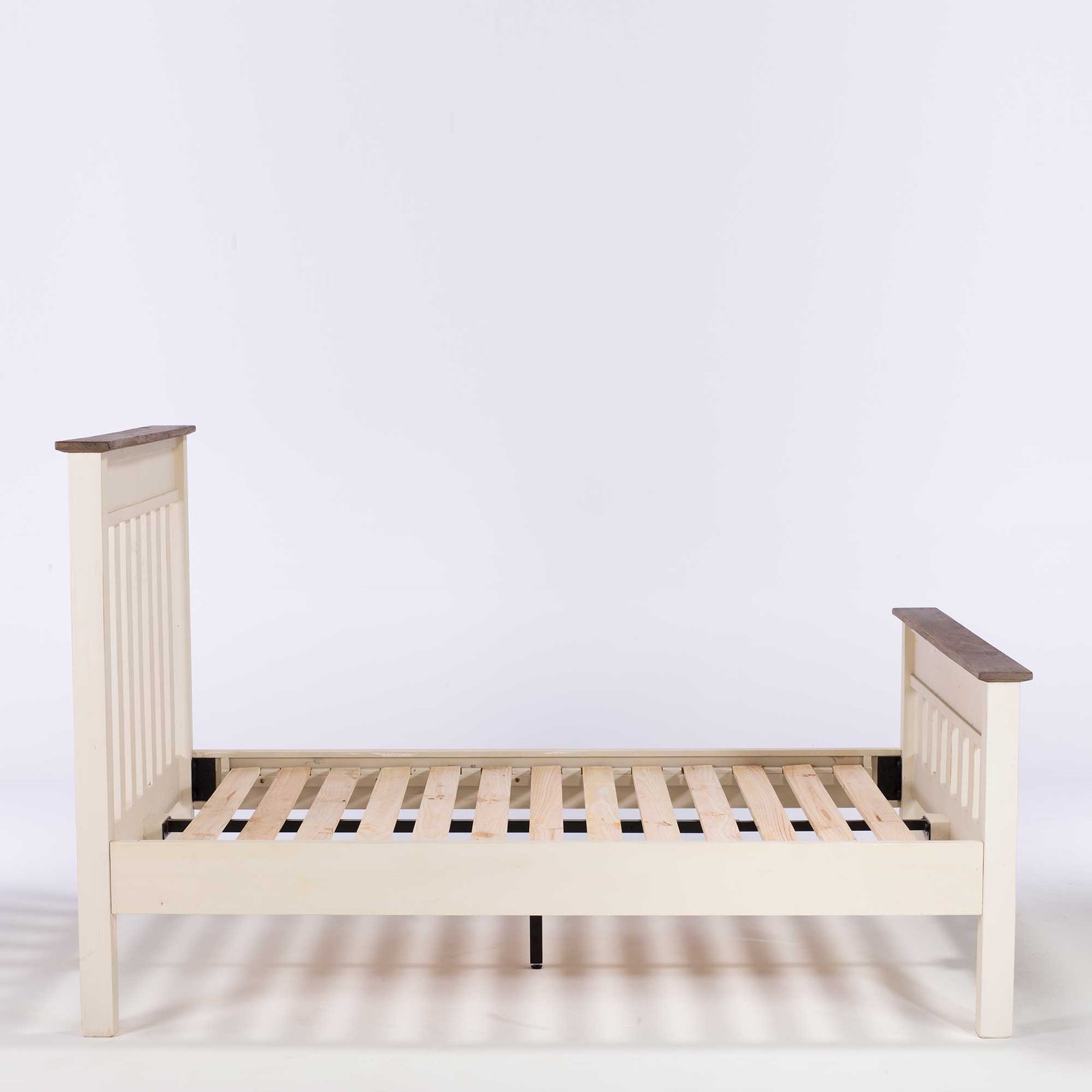 Available in Double, King and Queen sized teak frame with a smooth white painted finish, accentuated with a ash finished top, gives this collection an understated, calming beauty.